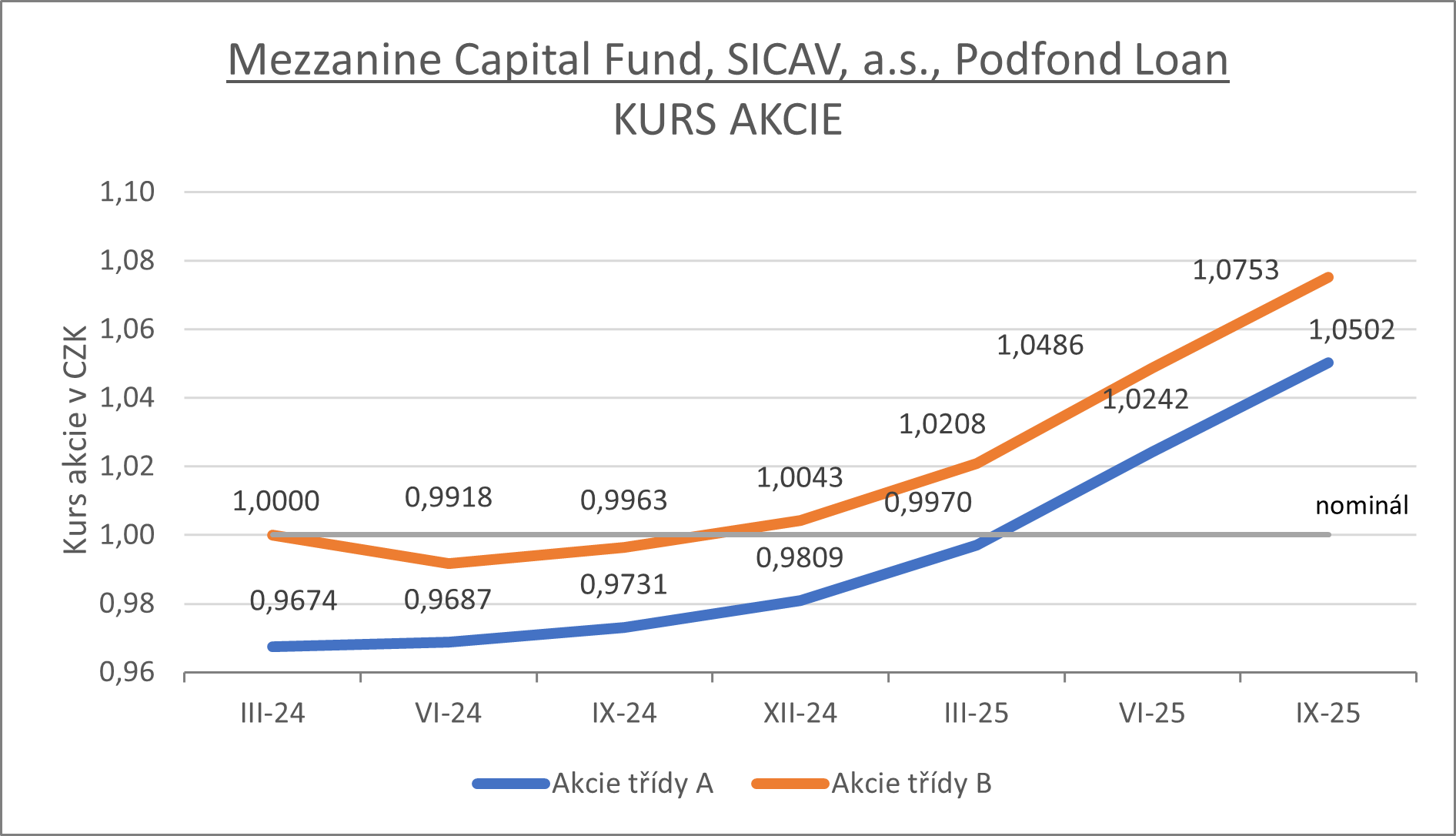 Velikost portfolia fondu a kurz investičních akcií k 30.09.2025: