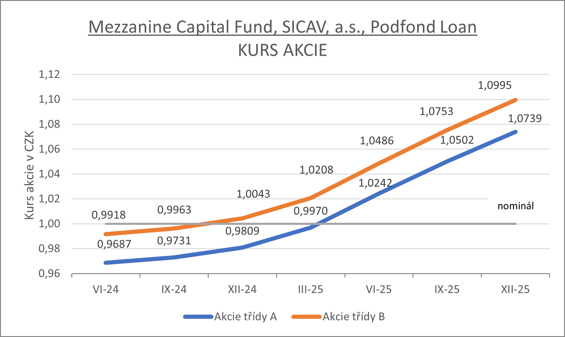 Vývoj kurzu investičních akcií fondu (potvrzeno auditem) v roce 2025: